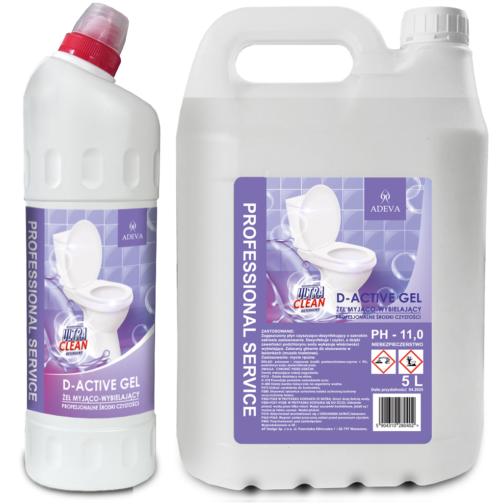 Zagęszczony płyn czyszcząco-dezynfekujący o szerokim zakresie zastosowania. Dezynfekuje i czyści, a dzięki zawartości podchlorynu sodu wykazuje właściwości wybielające. Zalecany głównie do stosowania w łazienkach (muszle toaletowe).