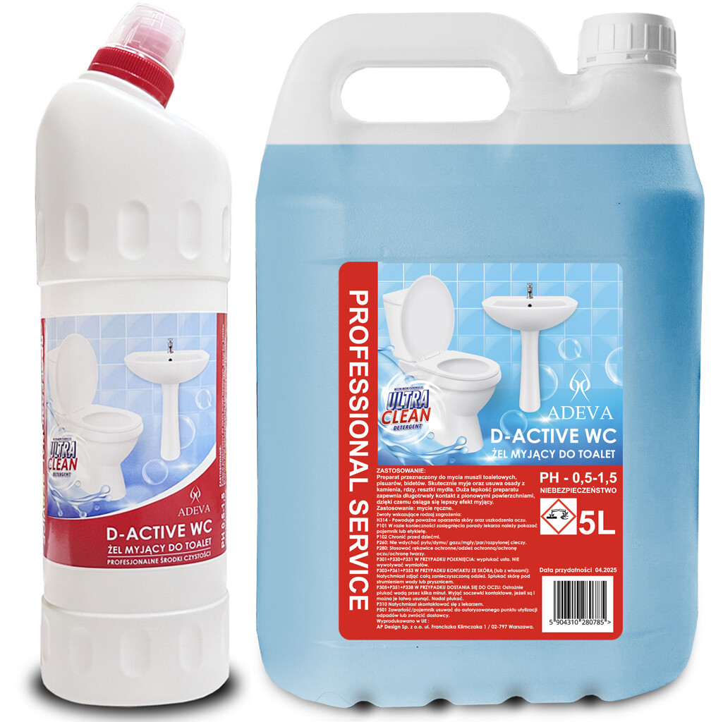 Zagęszczony płyn przeznaczony do mycia muszli toaletowych, wanien, pisuarów, bidetów. Skutecznie myje oraz usuwa osady z kamienia, rdzy, resztki mydła. Duża lepkość preparatu zapewnia długotrwały kontakt z pionowymi powierzchniami, dzięki czemu osiąga się lepszy efekt myjący.