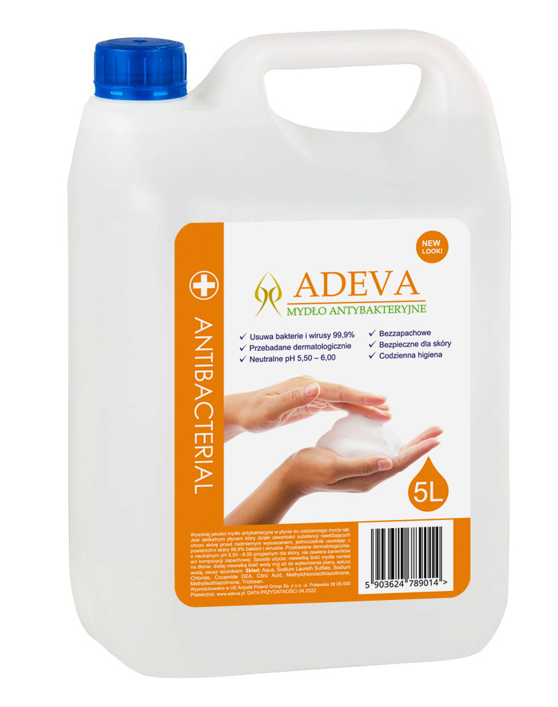 Wysokiej jakości mydło o działaniu antybakteryjnym w płynie do codziennego mycia rąk. Delikatny płyn, który dzięki zawartości substancji nawilżających chroni skórę przed nadmiernym wysuszaniem, jednocześnie usuwając z powierzchni skóry bakterie. Przebadane dermatologicznie, o neutralnym dla skóry pH 5.50 - 6.00, nie zawiera barwników. Sposób użycia: niewielką ilośc mydła nanieś na dłonie, dodaj niewielką ilość wody i myj, aż do wytworzenia piany, spłucz wodą, osusz jednorazowym ręcznikiem.